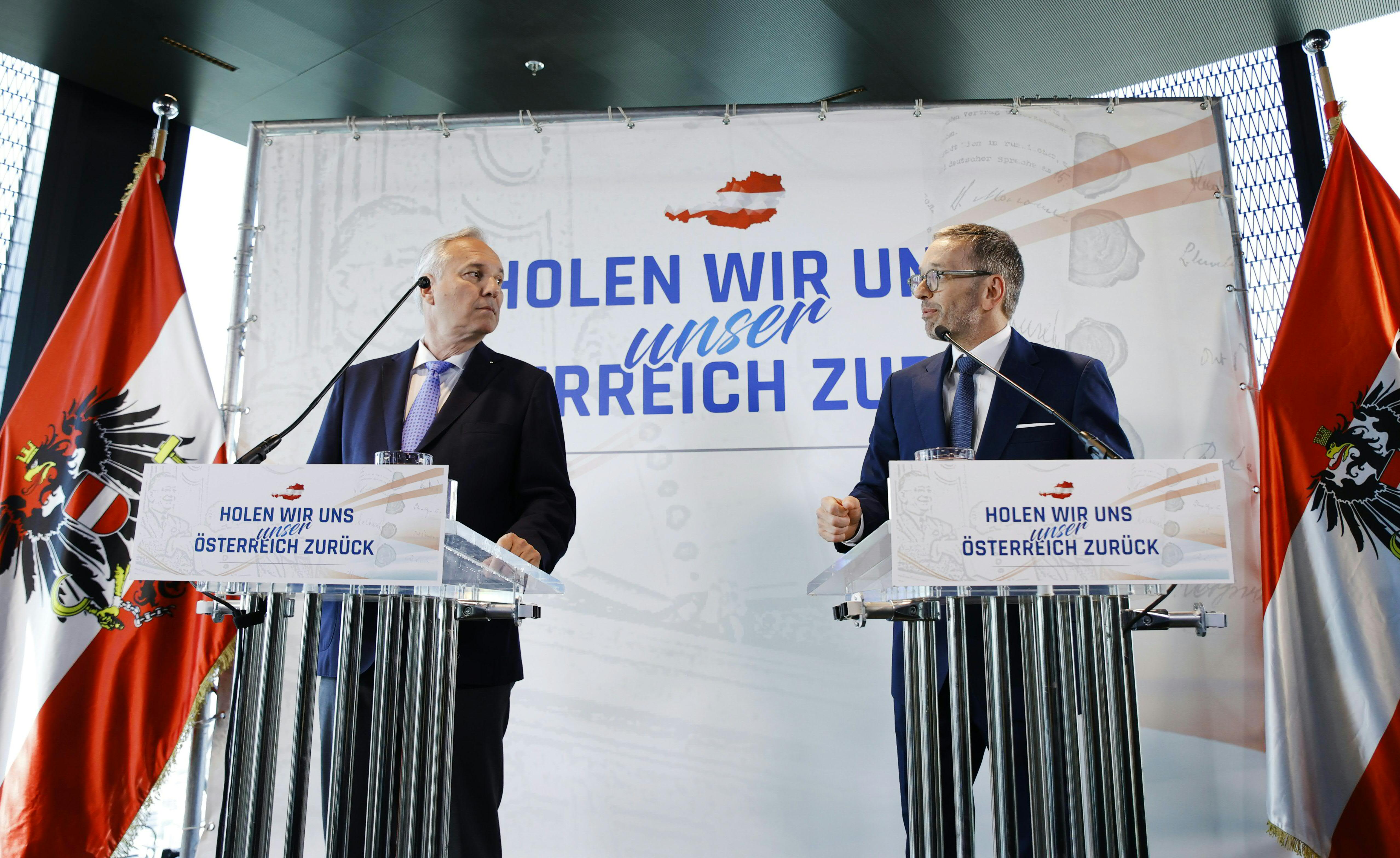 Keinen Zweifel ließ der amtierende Volksanwalt bei der Präsentation im Wiener DC Tower, dass er die Linie von Parteichef Herbert Kickl etwa gegen die Coronapolitik mittragen will. Beworben wird seine Kandidatur mit dem Slogan "Holen wir uns unser Österreich zurück" - und dem ikonischen Balkonbild von Leopold Figl (ÖVP) mit dem Staatsvertrag.