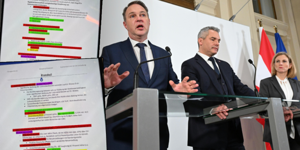 Wien. Mitten in die entscheidenden Verhandlungen zur Ampel-Koalition ließ Ex-FPÖ-Klubobmann Peter Westenthaler am Mittwochabend bei FELLNER! LIVE eine Bombe platzen. Westenthaler enthüllte auf oe24.TV das geheime Verhandlungs-Papier der wichtigsten Gruppe Wirtschaft/Steuern/Finanzen. Und das sieht alles andere als nach einer Einigung aus.