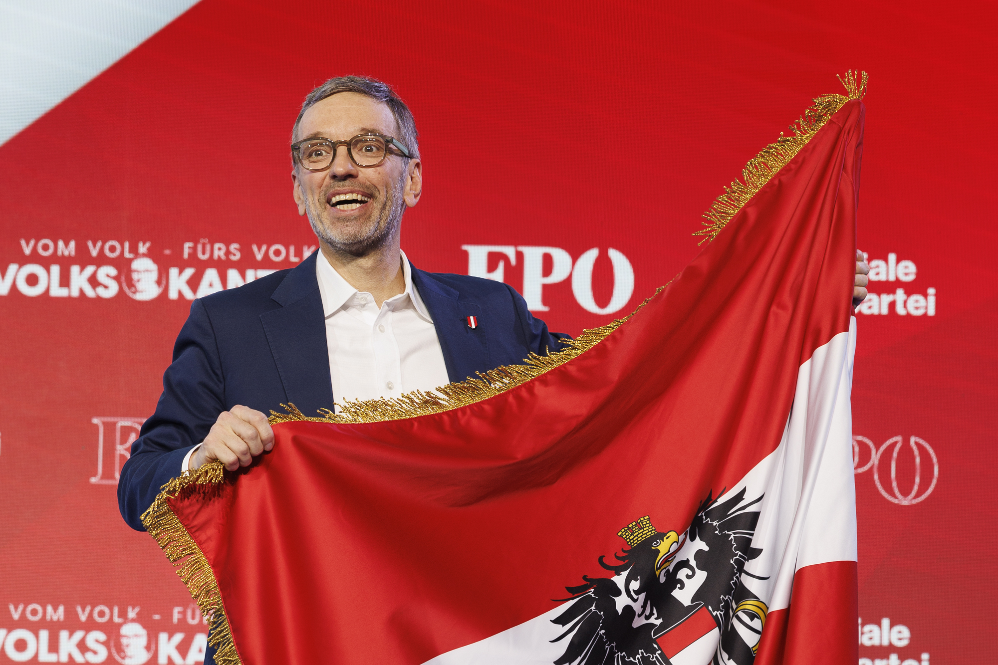 Ihr Fett bekamen auch "pragmatisierte Experten", und "Systemmedien" ab. Alles sei recht, um die Freiheitlichen schlechtzumachen: "Ihr seid aus der Zeit gefallen", rief Kickl Medienvertretern zu. Er verstehe ja auch nicht, warum alle Parteien nicht auf einer einzigen Liste kandidierten, denn alle hätten nur das Ziel, einen freiheitlichen "Volkskanzler" zu verhindern. "Liste Volksverrat würde gut passen", sagte Kickl, der eine "gespenstische Parallelverschiebung" mit "VIP-Gehabe, Signa und Abgehobenheit" geißelte. "Benko, Gusenbauer, Haselsteiner und der zernudelte Kogler", das stehe für Nehammer, Babler, Meinl-Reisinger, ein "Swingerklub der Machtlüsternen". Rechtsextrem-Punzierungen würden ihnen nichts helfen. "Das böse, böse Rechts ist nichts anderes als die Mitte der Gesellschaft, lasst euch nichts anderes einreden", sagte Kickl zum Publikum, der sich selbst "als einzigen Normalo unter lauter Systemlingen" bezeichnete. Und die Normalität werde ins Bundeskanzleramt einziehen, kündigte er an.