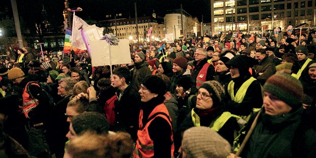 „Wir wollen friedlich bleiben, bei uns können auch Familien und Kinder mitgehen“, so Pegida-Sprecher Georg Nagel. Er selbst ist kein Unbekannter, schreibt für das FPÖ-nahe Blatt Zur Zeit und den rechten Eckart.
