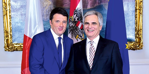 Ernst wurde es dann beim Thema Sparpolitik in der EU. Renzi und Faymann präsentierten sich als „Kämpfer“ gegen eine „reine Austeritätspolitik“, also gegen einen harten Sparkurs. Um die lahmende Wirtschaft am Kontinent anzukurbeln, darf das 399 Milliarden Euro umfassende Investitionsprogramm des EU-Kommissionspräsidenten Jean-Claude Juncker „nicht verkleinert werden“, betonte Faymann.