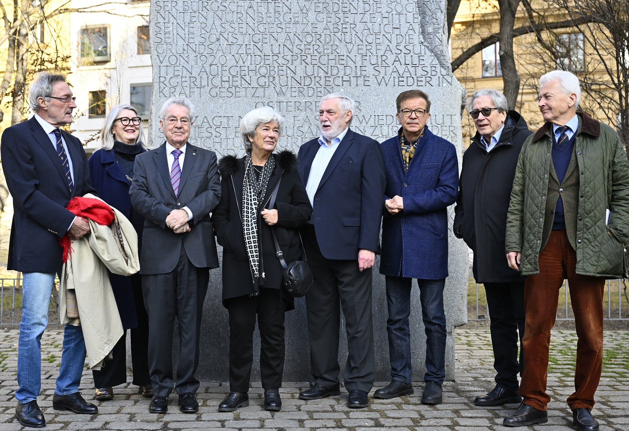Ähnliche Appelle kamen auch von den anderen Teilnehmern der Pressekonferenz. Zuvor hatten sie sich vor dem Denkmal gegen Krieg und Faschismus von Alfred Hrdlicka am Wiener Albertinaplatz für ein Foto aufgestellt.