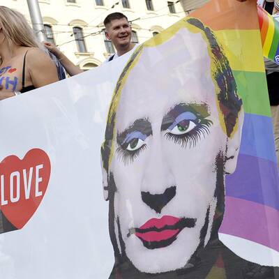 Aufgebrachte Bürger demonstrieren gegen die homo-feindliche Politik des russischen Premierministers in Wien.