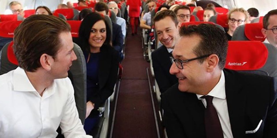 Kurz und Strache saßen denn auch im Flieger – schön populär in der Economy Class, Reihe 20. Dahinter die hochschwangere Umweltministerin Elisabeth Köstinger und Kanzleramtsminister Gernot Blümel. Man zeigte sich besonders heiter und vertraut miteinander, posierte artig für Fotos im Flieger, retweetete diese auf Twitter, lächelte den Passagieren zu – fast wie bei einem Schulausflug.