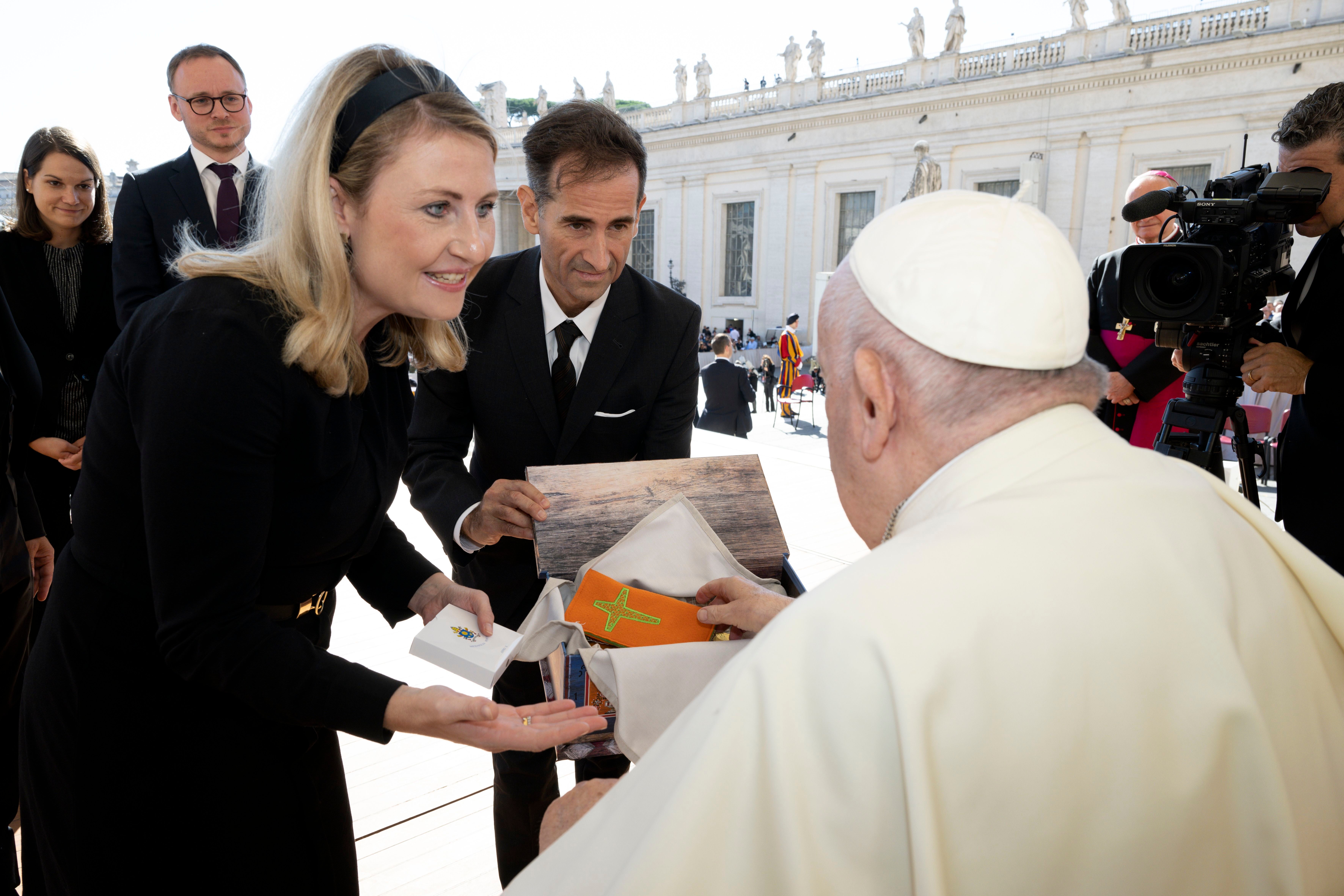 Raab überreichte Papst Franziskus im Rahmen der Generalaudienz am Mittwoch in Rom handgemachte Andenken aus der Werkstatt der gemeinnützigen St. Elisabeth Stiftung der Erzdiözese Wien. Zudem gab es für den Papst Lebkuchen aus Mariazell von Raab.