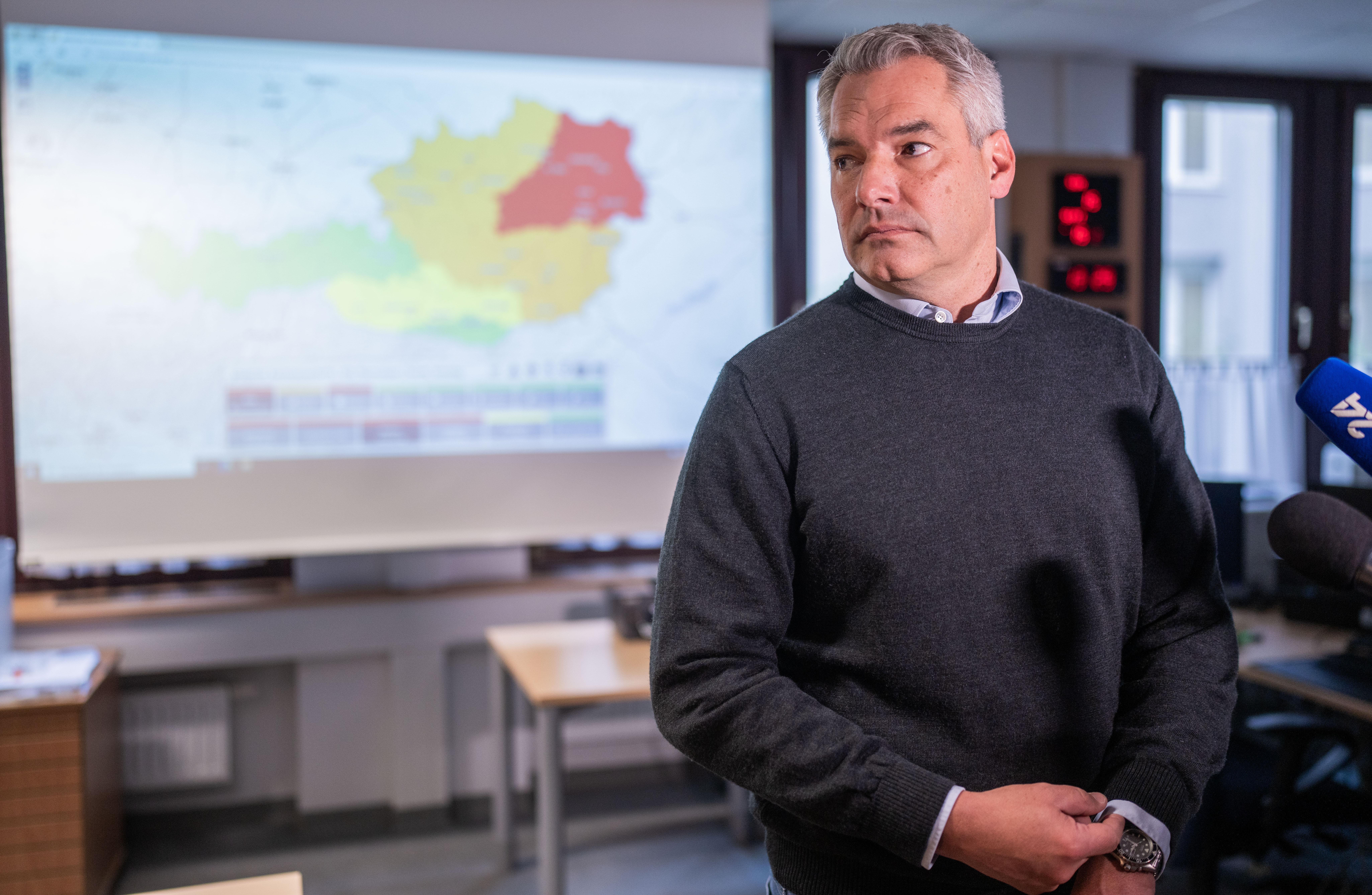 Den Bürgerinnen und Bürgern riet er, den "Anweisungen der Behörden zu folgen". Bei der Koordinierung stehe nun "Menschenleben retten" im "absoluten Vordergrund". Erst danach gehe es darum, "Schäden zu beheben", so Nehammer. "Die Menschen müssen wissen, wir lassen sie nicht alleine". Bezüglich des Katastrophenfonds meinte Nehammer: "Sollten die Mittel nicht ausreichen, werden sie erhöht".