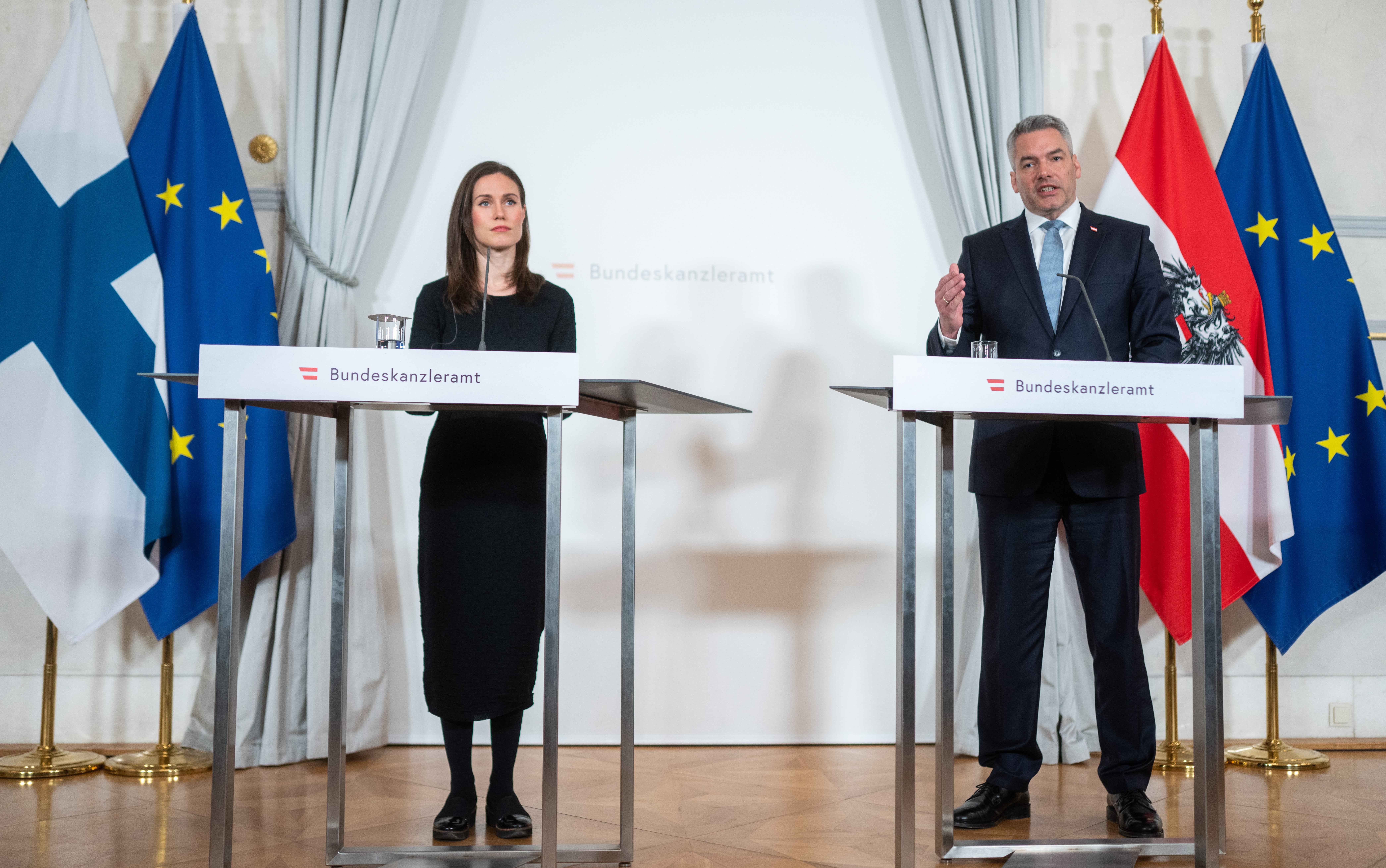 "Der Vorwurf Russlands, dass wir nicht neutral sind, geht ins Leere", sagte Nehammer am Freitag bei einem Pressekonferenz mit der finnischen Regierungschefin Sanna Marin in Wien.