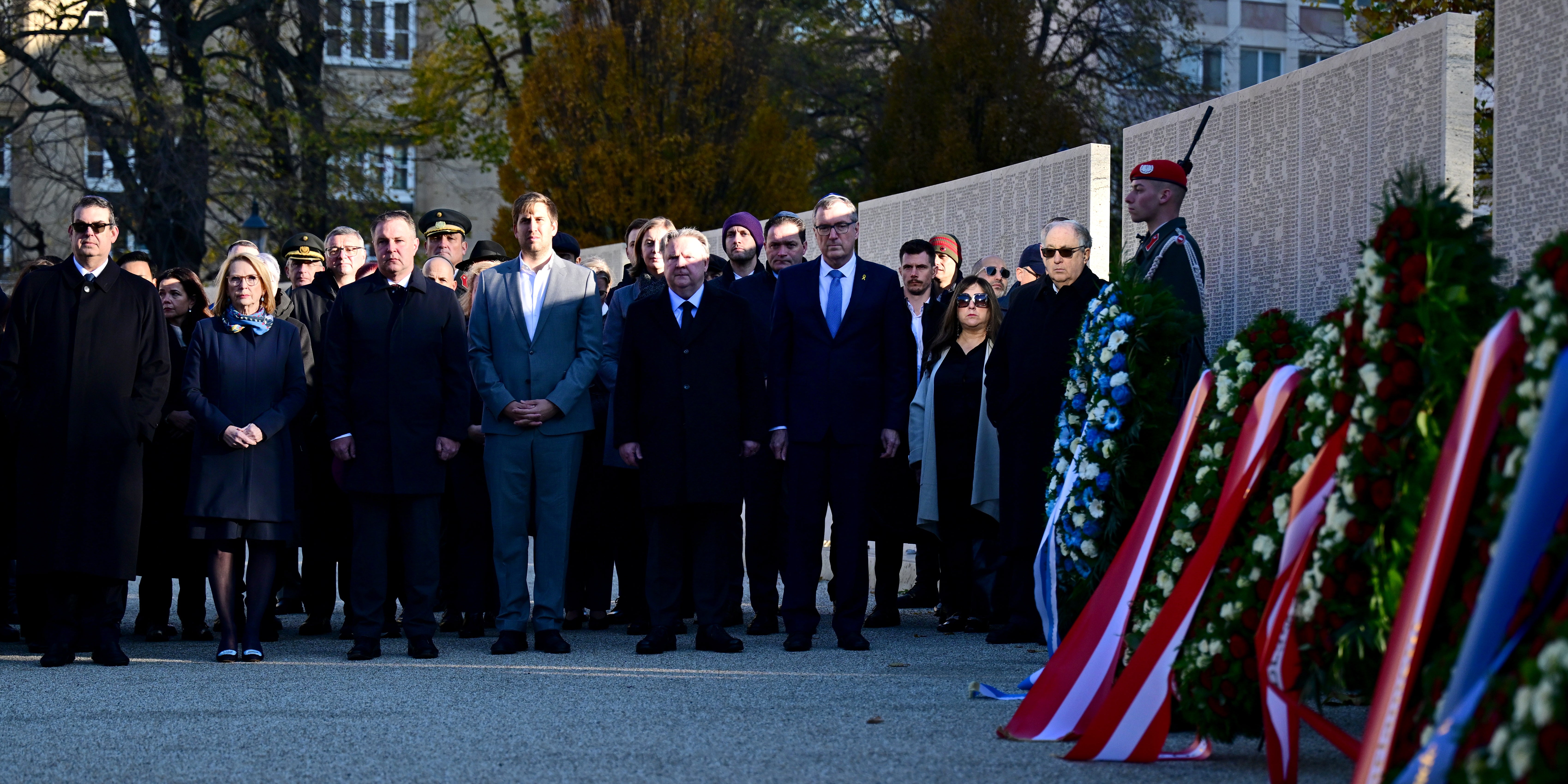 Mehrere Regierungsmitglieder erinnerten bei einer Kranzniederlegung an der Shoah-Namensmauer im Wiener Ostarrichipark an die Pogrome. Der Präsident der Israelitischen Kultusgemeinde (IKG), Oskar Deutsch, warnte im Anschluss vor Medienvertretern vor einem "Tsunami" an antisemitischen Übergriffen auf der ganzen Welt.