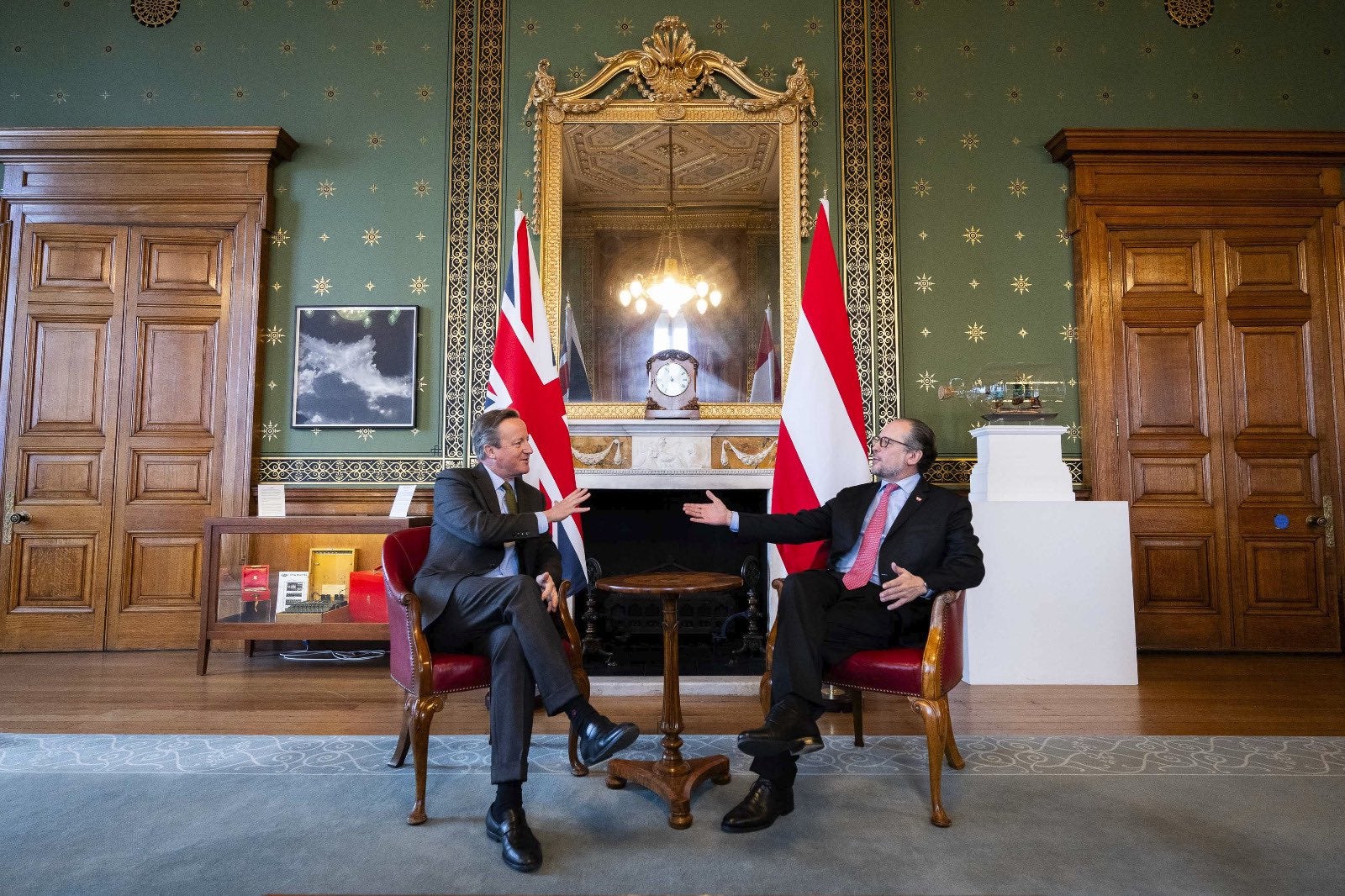 Außenminister Alexander Schallenberg (ÖVP) ist am Montag in London mit seinem neuen britischen Amtskollegen David Cameron zusammengetroffen.