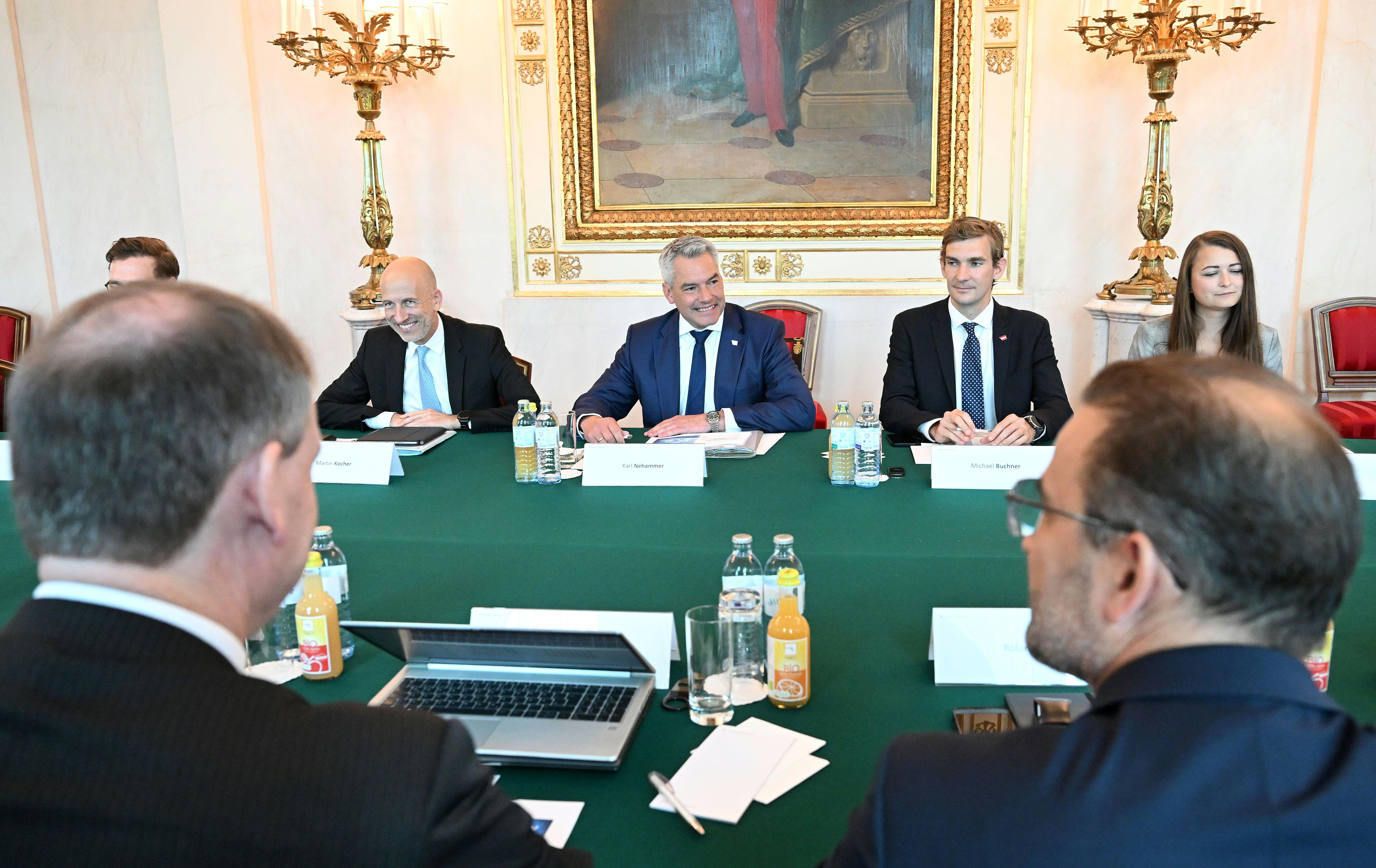 Beim "Runden Tisch" kamen Kanzler Nehammer, Wirtschaftsminister Martin Kocher und Steiermarks Landeshauptmann Christopher Drexler (ÖVP) mit der IV und Vertretern von Autofirmen zusammen. Anschließend gab es eine Pressekonferenz. Dort erklärte Nehammer, er fordere ein "Aus vom Verbrenner-Aus". Das "Ja zum Auto" sei ein "Ja zu einer starken Wirtschaft, zu Arbeitsplätzen und Wohlstand."