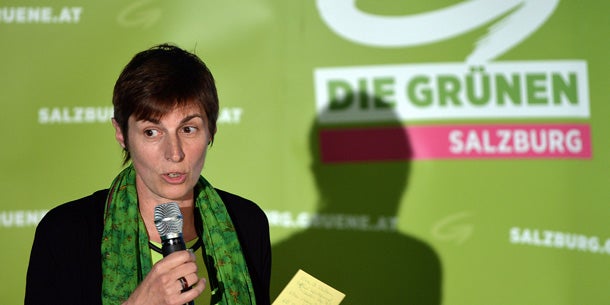 Zwar hatte ein heftiger Platzregen den Grünen Schlussevent von der Dachterrasse des Salzburger Uni-Zentrums ins Erdgeschoß gezwungen, wo sich einige Dutzend Anhänger der Partei in einem Studentenlokal drängten. Dennoch war die Stimmung dort nahezu ungetrübt – sieht man vom Ärger über Zeitungsinserate ab, in denen die SP-Parteijugend am Freitag vor einer Koalition aus ÖVP, Grünen und Team Stronach warnte („Grünwähler werden schwarz sehen“). Die zur Unterstützung der Landespartei angereiste Bundesparteichefin Eva Glawischnig, wünschte sich die Inserate „in den Mistkübel“. Und Ex-Landessprecher Cyriak Schwaighofer revanchierte sich, indem er SP-Landeshauptfrau Gabi Burgstaller angesichts ihres wiederholten Liebäugelns mit einer vorzeitigen Amtsübergabe mit Kärntens Ex-Landeschef Jörg Haider („bin schon weg, bin wieder da“) verglich.