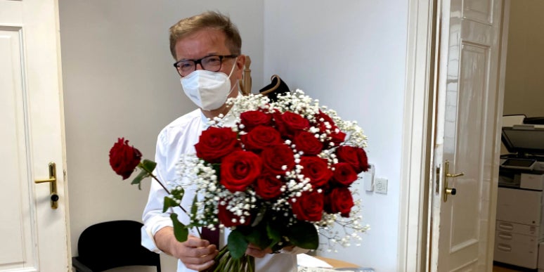 Abschied: Anschober verteilt an sein Team Rosen.