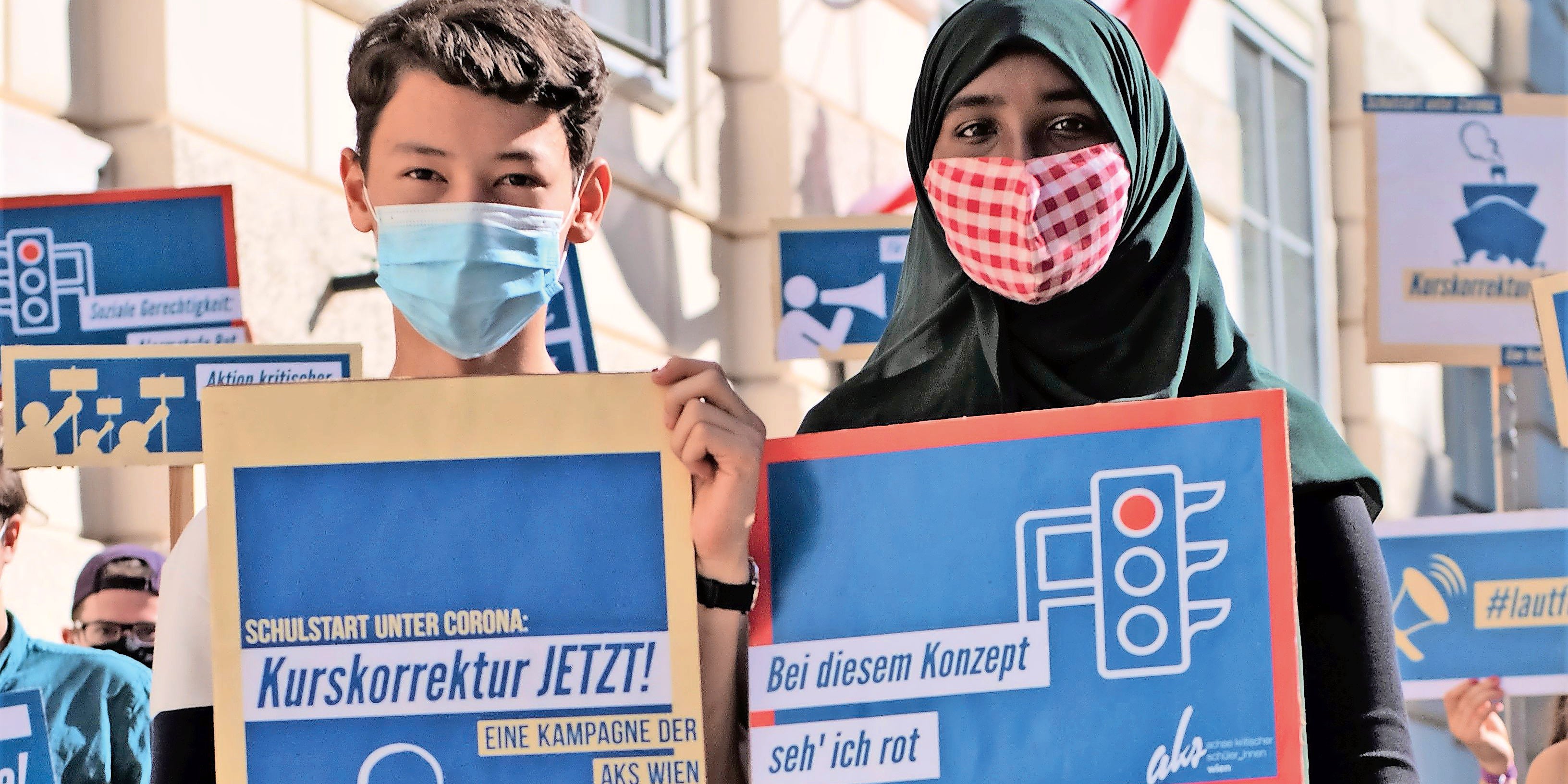 Bei einer Aktion vor dem Bildungsressort präsentierte die SPÖ-nahe „Aktion Kritischer SchülerInnen“ Forderungen an Bildungsminister Heinz Faßmann. Sihaam Abdillahi (AKS): „Es kann nicht sein, dass am Ende die SchülerInnen diejenigen sind, die die Folgen von Corona durch noch höheren Leistungsdruck ausbaden müssen.“ Die Forderungen reichen von Teilstreichung des Schulstoffs bis zu Berufsfreistellungen für Eltern, deren Kinder wegen Corona erneut zu Hause bleiben müssen.