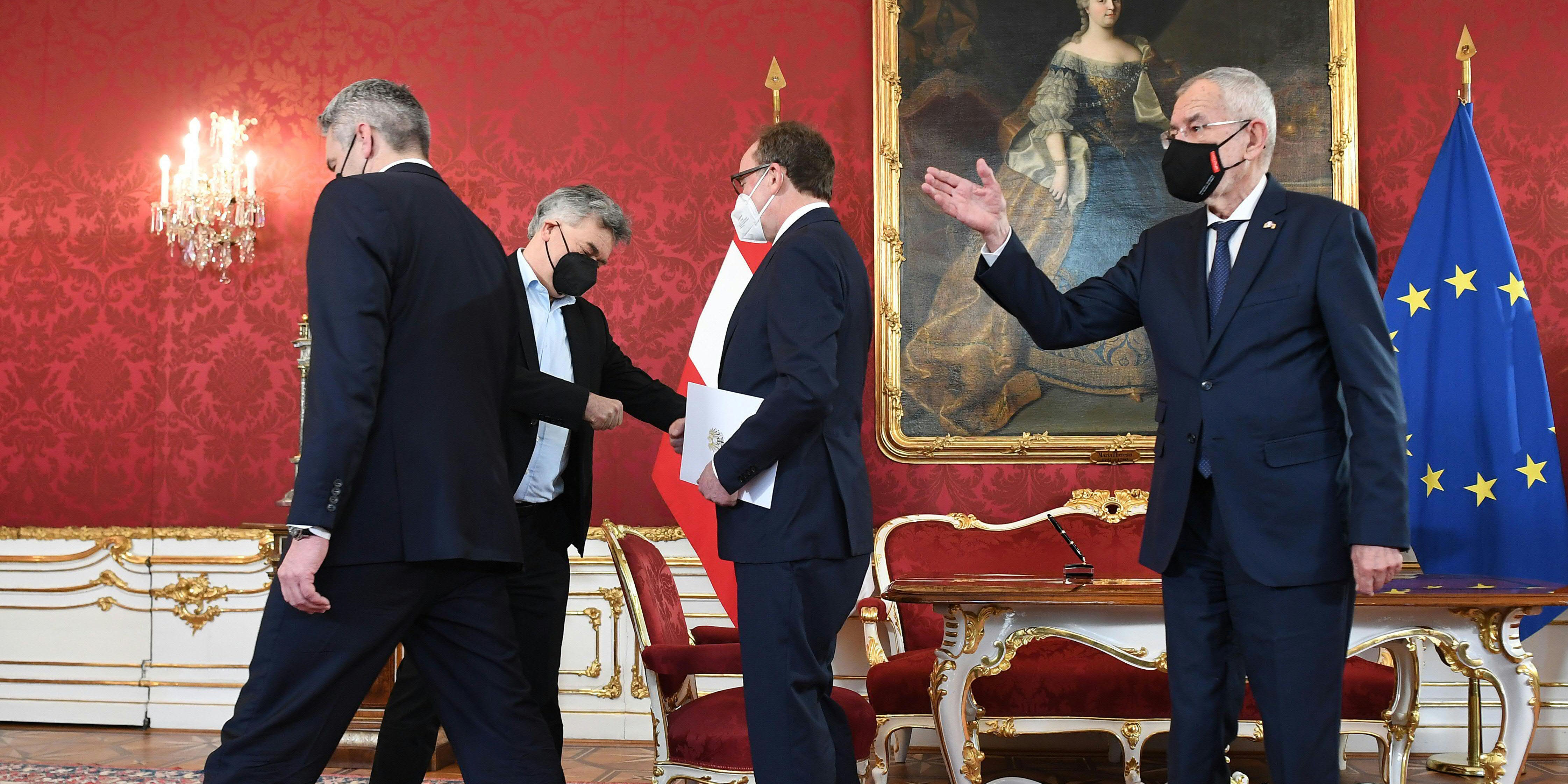Ihren Tribut forderten nicht nur die Korruptionsermittlungen gegen Sebastian Kurz und dessen Umfeld sondern auch die Corona-Pandemie und Plagiats-Vorwürfe. Aufseiten der ÖVP haben sich mit Kanzler Kurz und nun Köstinger und Schramböck insgesamt sechs des zwölfköpfigen Teams komplett verabschiedet, drei Regierungsmitglieder (einer zweimal) haben die Posten gewechselt. Nur vier der zehn Minister sind nach den jüngsten beiden Abgängen noch in der Funktion tätig, für die sie vor rund zwei Jahren und vier Monaten angelobt wurden - und am Ballhausplatz sitzt schon der dritte Bundeskanzler.