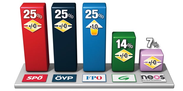Drei Parteien liegen bei 25 % - Grüne 14, Neos bei 7 %.