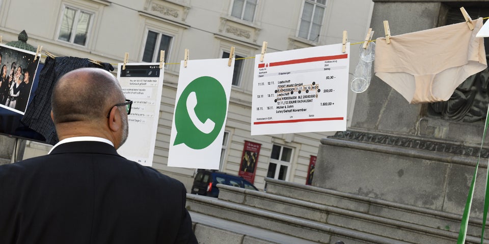 Die SPÖ hat vor der Nationalratssitzung am Freitag mit Unterhosen und Kondomen gegen das Überwachungspaket, das im Plenum beschlossen wird, demonstriert. SPÖ-Abgeordnete hängten vor dem Parlament eine Wäscheleine mit intimen Gegenständen wie Unterwäsche und Privatfotos auf und forderten auf Plakaten "ein Privatleben ohne Kickl".