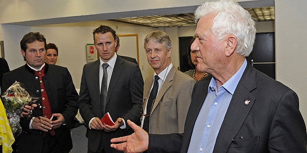 In seiner Rede brachte der Magna-Gründer eine neue Lösungs-Variante ins Spiel. Man könnte einen aus 40 "gestandenen Bürgern" bestehenden "Aufsichtsrat"gründen, vor dem die auf der zugelassenen Stronach-Liste des Ex-Landesgeschäftsführers Hans-Peter Mayr stehenden Proponenten eine "eidesstattliche Erklärung" abgeben. "Sie könnten sich verpflichten, einen Eid abzulegen", sagte der Austrokanadier.