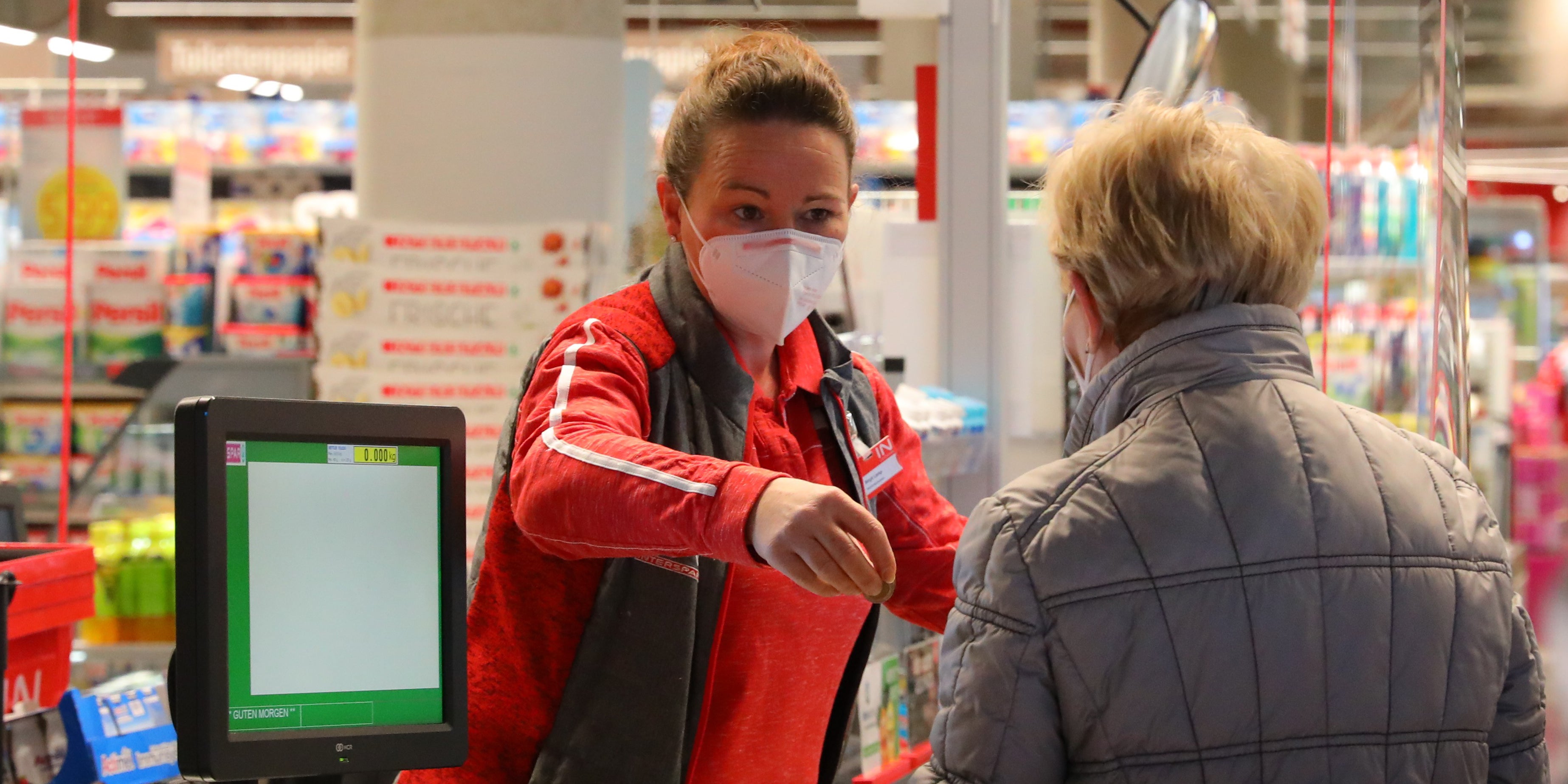 "Acht Stunden täglich mit den dicht sitzenden FFP2-Masken zu arbeiten, das erschwert die Arbeitsbedingungen der Handelsangestellten enorm", heißt es am Montag in einer Aussendung des Handelsverbands. In Handelsfirmen abseits des Lebensmittelhandels gilt die FFP2-Maskenpflicht nicht. In dem Schreiben wird eine rechtliche Gleichstellung des Personals des Lebensmitteleinzelhandels mit dem allgemeinem Handel gefordert. Die kürzlich eingeführte Differenzierung verschärfe den Personalmangel in der Branche eklatant, so die Handelsvertreter.