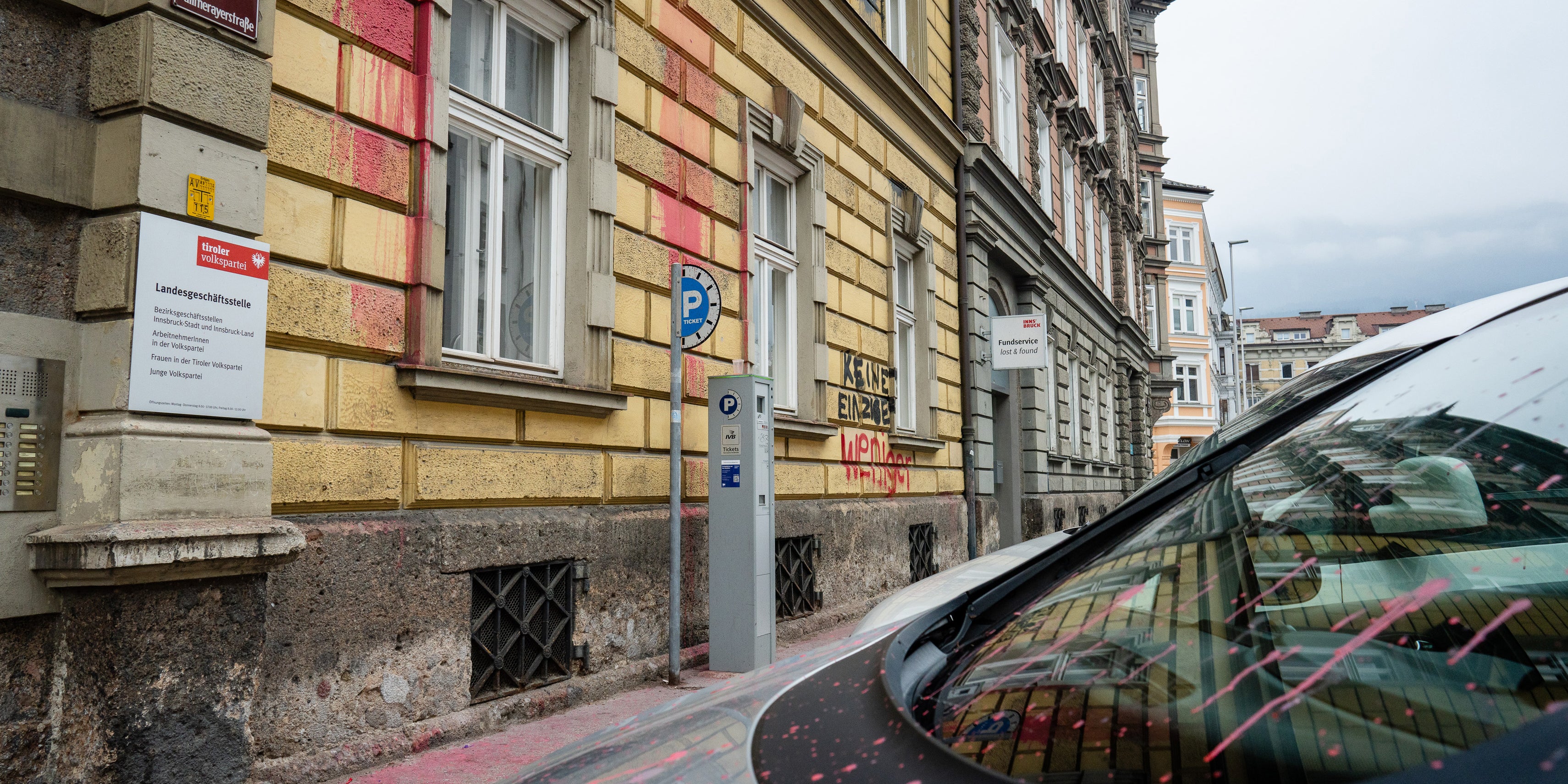 Innsbruck. Die Tiroler ÖVP-Landesparteizentrale in Innsbruck und davor parkende Autos sind in der Nacht auf Mittwoch mit Farbe beschmiert worden. Landesgeschäftsführer Sebastian Kolland vermutete, dass "augenscheinlich linke Aktivisten am Rande einer Anti-Femizid-Demonstration" dafür verantwortlich seien. Auf der Fassade war der Schriftzug "Keine einzige weniger" zu lesen, am Abend hatte eine Kundgebung zum Thema Frauenmorde stattgefunden. Die ÖVP brachte den Vorfall zur Anzeige.