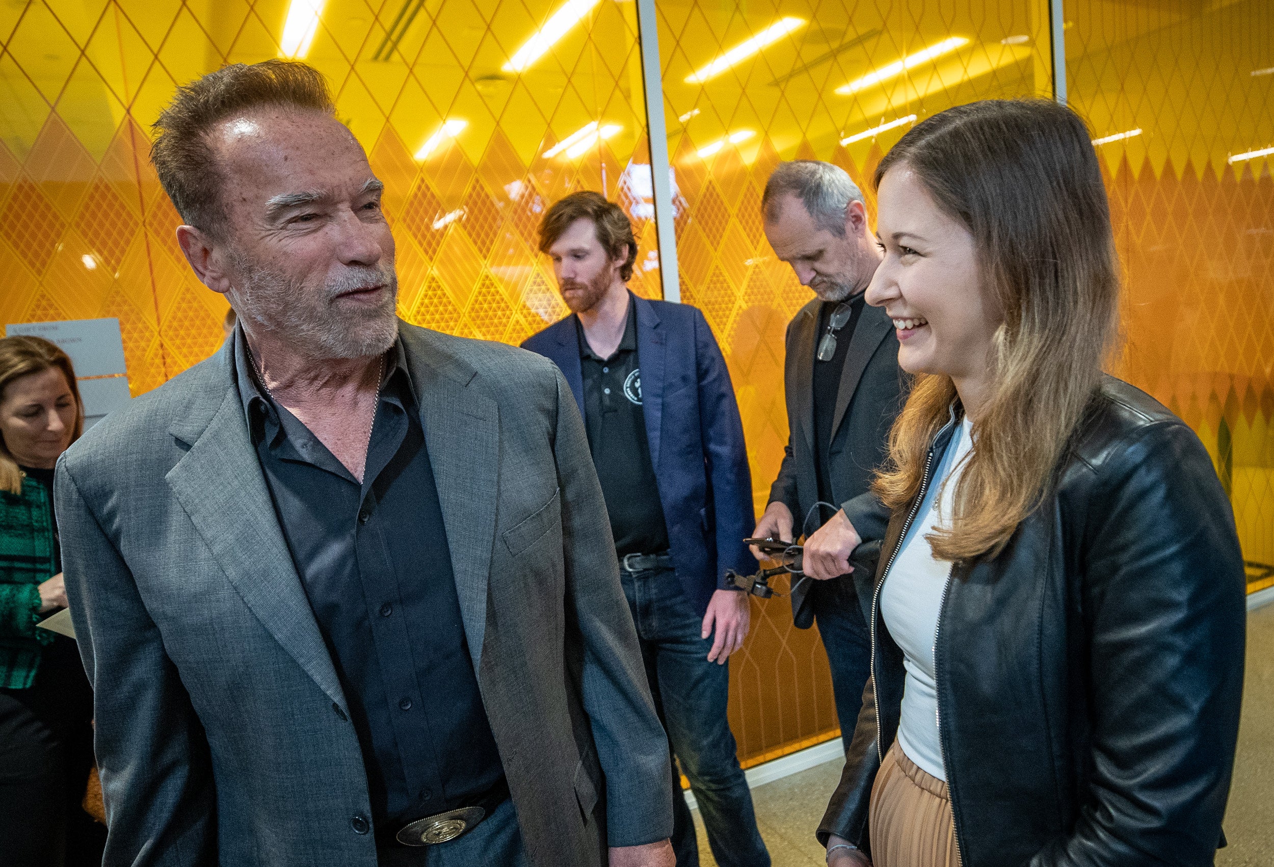 Vor seinem Vortrag „Breaking the Cycle of Extremism“ hatte Jugendstaatssekretärin Claudia Plakolm die Gelegenheit für ein Treffen mit Arnold Schwarzenegger.