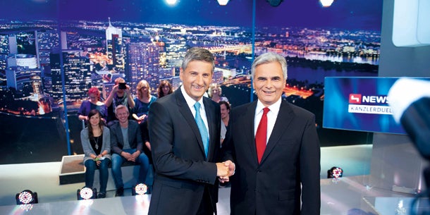 Faymann und Glawischnig haben die TV-Duelle bisher laut Umfrage am besten absolviert.