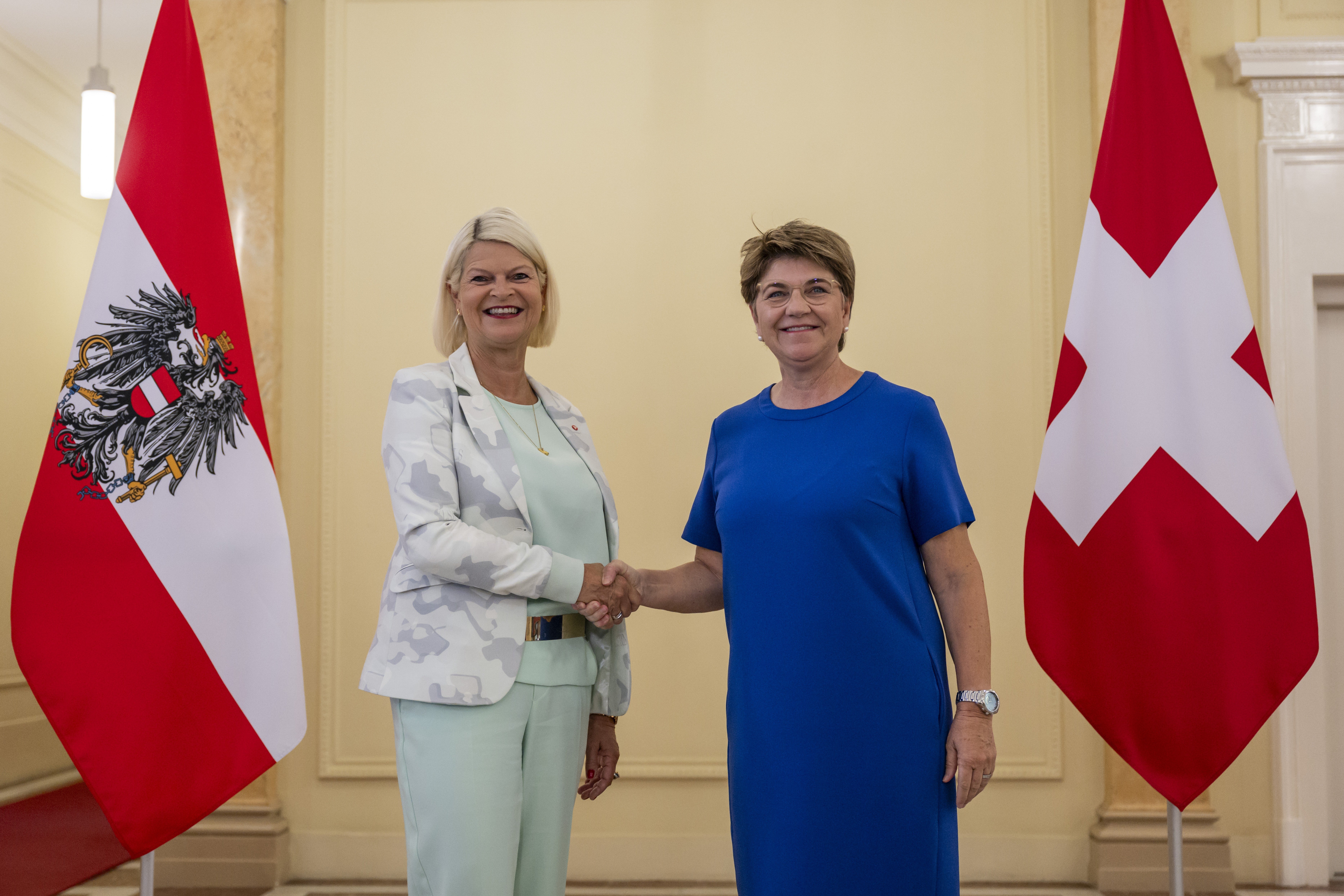 Die Unterzeichnung der Absichtserklärung zum "Sky Shield" fand im Beisein des deutschen Verteidigungsministers Boris Pistorius und im Rahmen eines trilateralen D-A-CH-Treffens statt. Die Schweiz hat derzeit den Vorsitz in diesem Drei-Länder-Forum inne, das sich regelmäßig trifft. In einer Zusatzerklärung wurde festgehalten, dass die "besonderen verfassungsrechtlichen Gegebenheiten" Österreichs und der Schweiz berücksichtigt werden.