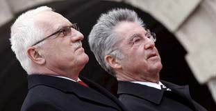 Der tschechische Staatspräsident Vaclav Klaus hat im Rahmen eines Kurzbesuches in Wien aus seiner Ablehnung des EU-Reformvertrages von Lissabon kein Geheimnis gemacht. Als Staatsbürger würde er den Vertrag, der große Ähnlichkeit mit der zuvor gescheiterten EU-Verfassung habe, in einem allfälligen Referendum ablehnen. Als Staatspräsident werde er den Vertrag jedoch respektieren und den Ratifizierungsprozess in der Tschechischen Republik "nicht komplizieren und nicht behindern", sagte Klaus am Dienstag nach einem Gespräch mit Bundespräsident Heinz Fischer vor der Presse in Wien.
