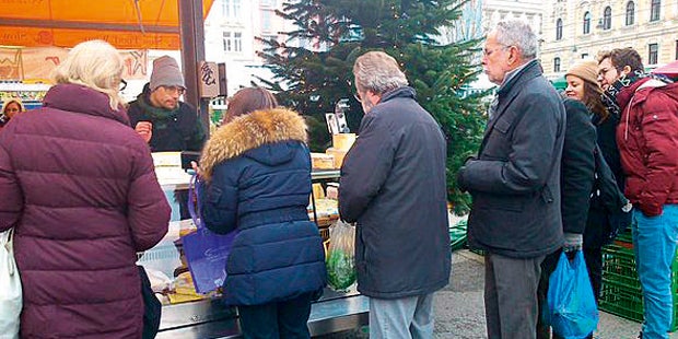 Am Wiener Karmelitermarkt wurde der wahrscheinliche grüne Präsidentschaftskandidat Alexander Van der Bellen am vergangenen Samstag beobachtet. Diese Nachricht verbreitete sich am Montag via Twitter wie ein Lauffeuer.