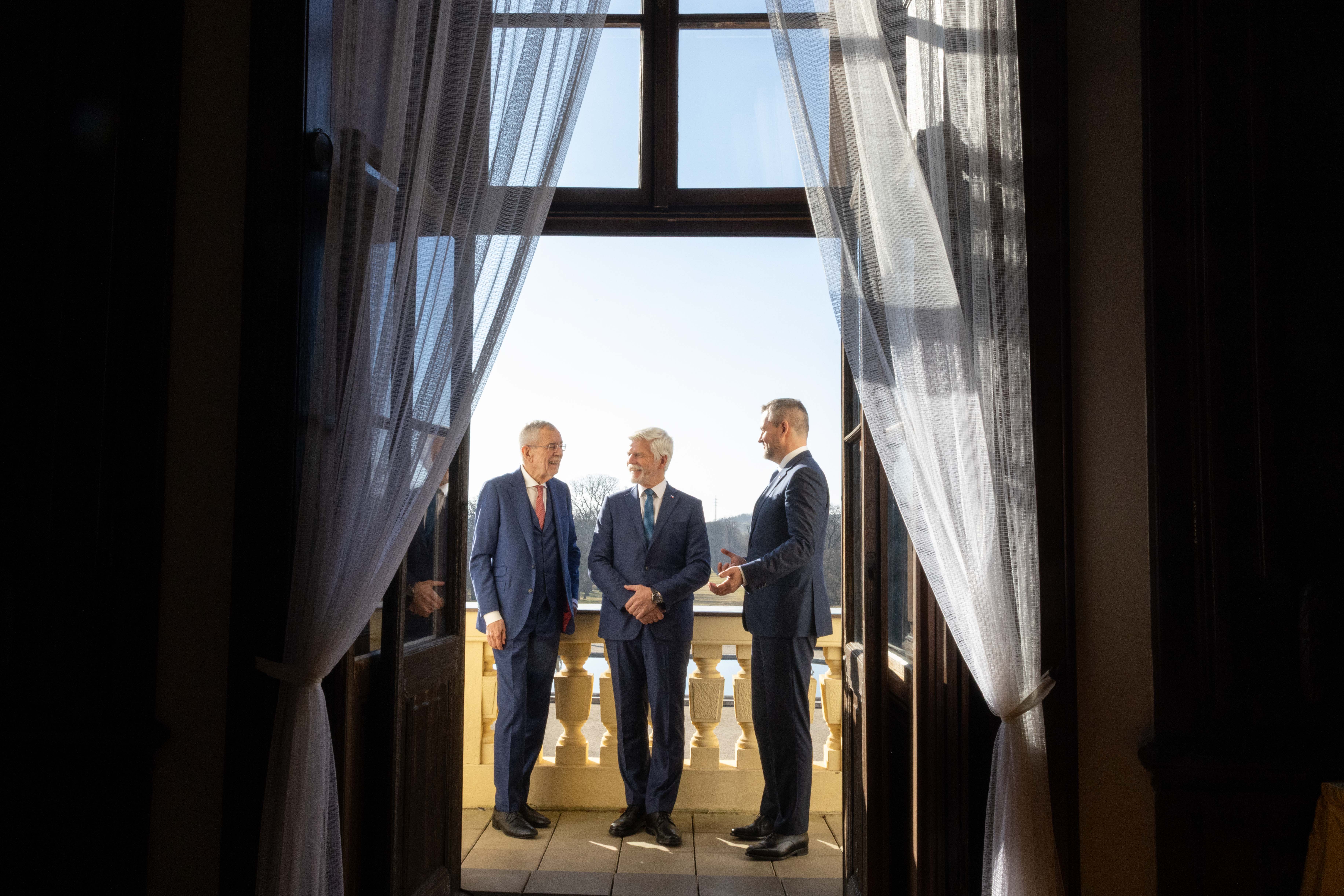 Van der Bellen, Petr Pavel und Peter Pellegrini wollten bei ihrem Treffen über den Angriffskrieg Russlands auf die Ukraine, die europäische Sicherheit, Stärkung der Kooperation in der EU und nachbarschaftliche Beziehungen sprechen.