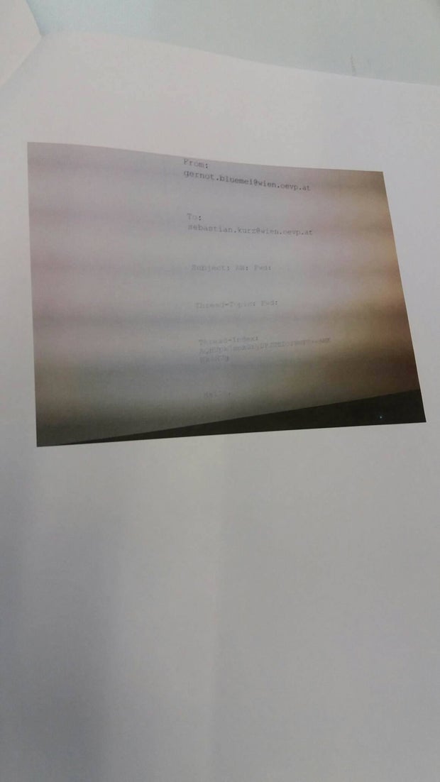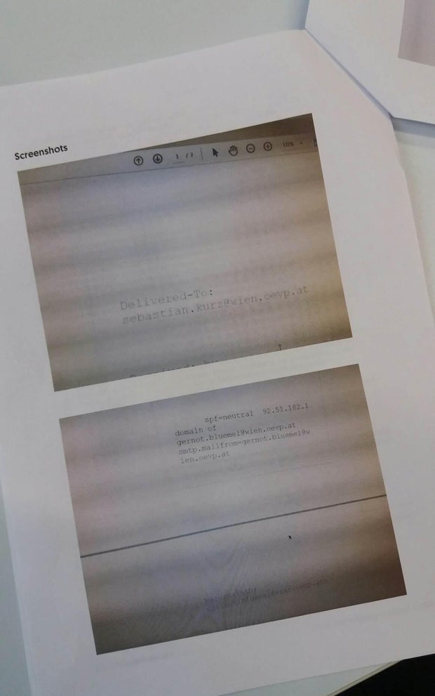 Sebastian Kurz und ÖVP-General Nehammer haben Screenshots der Mails nach der forensischen Untersuchung an die Medien weitergereicht. Doch darauf ist nichts Inhaltliches zu sehen, nur die beiden E-Mail-Adressen "sebastian.kurz@wien.oevp.at" und "gernot.bluemel@wien.oevp.at" kann man lesen.