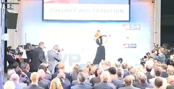 11.13 Uhr: Nur noch wenige Minuten bis zur Rede von Vize-Kanzler Michael Spindelegger. Zuvor geigt Celine Roschek noch einmal auf.