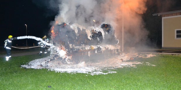 Die Feuerwehr Dietach rückte mit einem Großaufgebot aus, die Landschaftswerbung wurde aber vollständig zerstört.