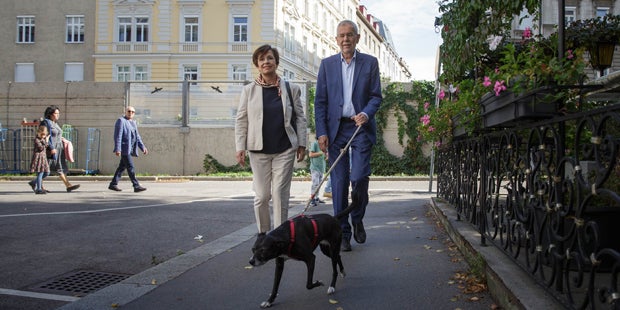 Bundespräsident Van der Bellen wählte mit seiner Ehefrau und dem First Dog.