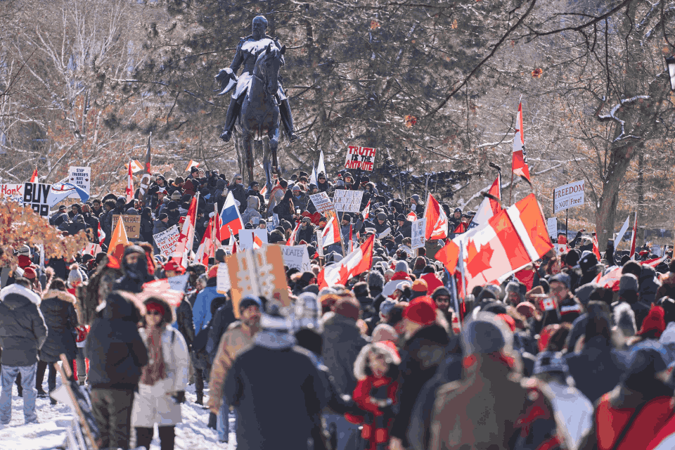 Die eigentlich recht beschauliche Innenstadt Ottawas mit ihrem gitterartigen Straßennetz und dem gotischen Parlamentsbau im Norden ist nun Tag für Tag im Ausnahmezustand. Tonnenschwere Laster versperren die Zufahrtswege, teilweise demonstrieren Tausende vor dem Abgeordnetenhaus im eisigen kanadischen Winter gegen die Regierung und die von ihr verfügten Corona-Einschränkungen.