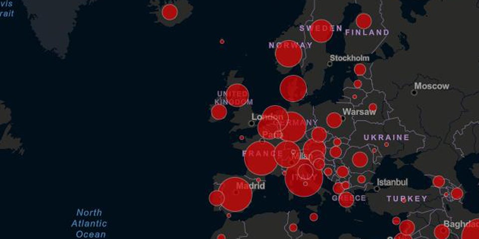 Die roten Kreise auf der Corona-Virus-Grafik werden immer größer: Die Zahlen der Infizierten in Europa steigen extrem an. Hier ein Überblick über die Krisensituation in anderen Nationen.