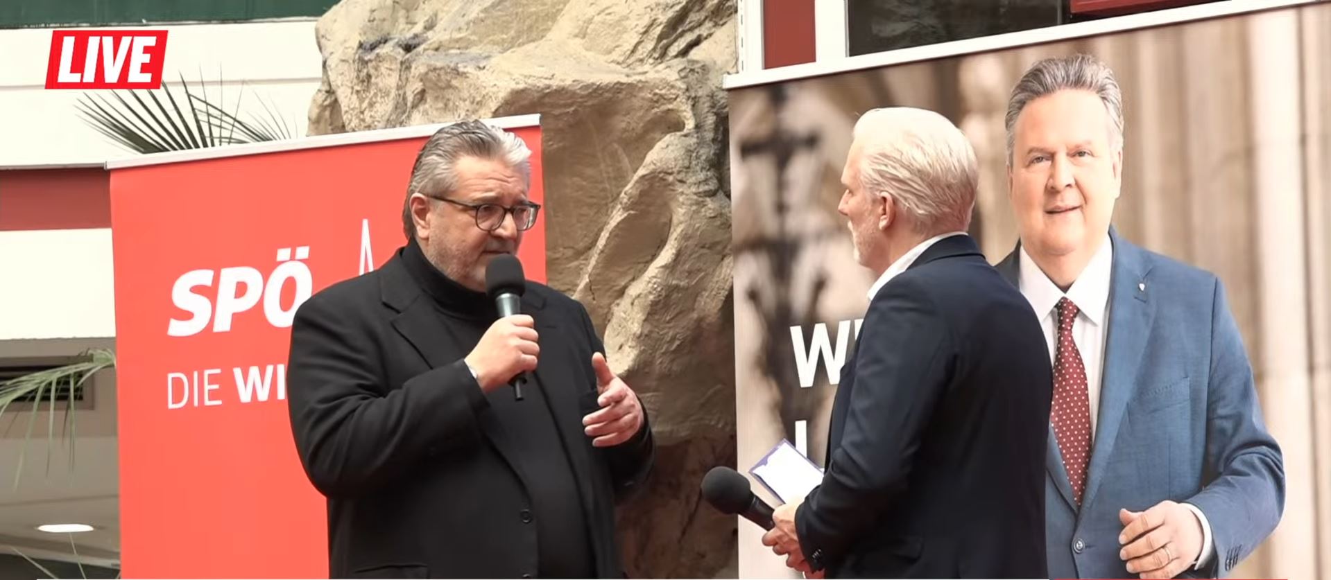 Ab 15 Uhr war dann Gesundheitsstadtrat Peter Hacker (SPÖ) auf der Bühne. Er vertrat Bürgermeister Michael Ludwig. Hacker appellierte an alle, wählen zu gehen - "für wen auch immer sich die Menschen entscheiden". Es brauche eine hohe Wahlbeteiligung.