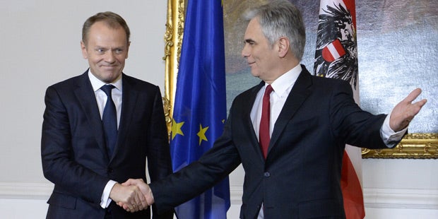 "Österreich befand sich während der letzten Monate im Auge des Orkans", räumte auch der EU-Ratspräsident ein. Es könne daher "kaum als Überraschung kommen, dass die Frustration steigt - die Geduld geht zu Ende, während populistische Kräfte in die erste Reihe drängen". Allein, gerade in Zeiten wie diesen sei es wichtig "die Ruhe zu bewahren und gemeinsam an einem europäischen Plan zu arbeiten - und das schnell." Nach dem heutigen Gespräch mit Faymann sei er überzeugt, dass Österreich daran mitarbeiten werde.