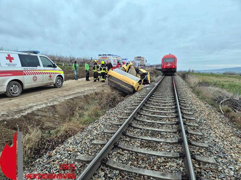 NÖ. Eine Straßenwalze ist am Montagnachmittag in Herzogenburg (Bezirk St. Pölten) mit einem Regionalzug kollidiert. Der 19-jährige Lenker der Baumaschine wurde laut Polizeiangaben vom Dienstag verletzt und von der Rettung in das Universitätsklinikum St. Pölten transportiert. Der 47-jährige Lokführer hatte vergeblich eine Notbremsung eingeleitet, er und die rund 30 Passagiere blieben ohne Blessuren.