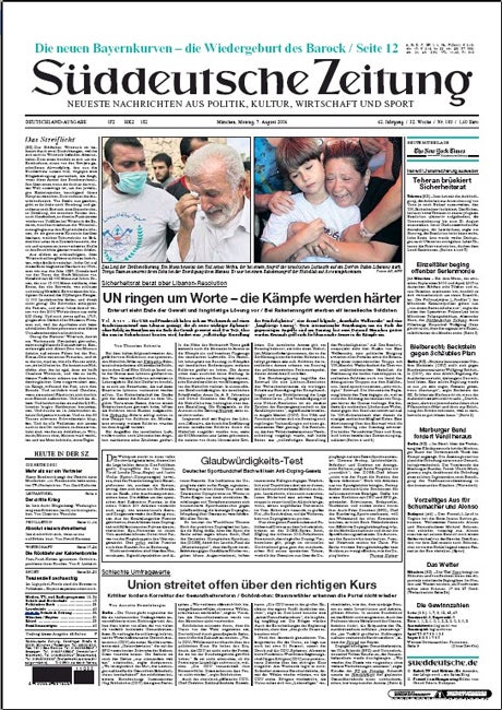 oe24.at Inland Deutschland Süddeutsche Zeitung 07.08.06, 10:24 | Aktualisiert: 12.07.10, 18:31 Teilen 07.08.2006 Süddeutsche Zeitung: Titelseite vom 07.08.2006 © oe24 Fehler im Artikel gefunden? Jetzt melden. Die Top-Stories vom oe24 E-Paper Bandenkrieg in Meidling: Haupttäter kassiert sechs Jahre Haft Stocker in Davos: Treffen mit Kurz und Selenskyj Totes Baby an Grenzübergang: Mädchen wurde getötet Eklat im Parlament: "Keine Zähne, zerrissene Hose" ESC-Hit: ER gewinnt den Song Contest in Wien! Das steckt hinter Bellinghams provokantem Bier-Jubel EU-Parlament blockiert Mercosur-Abkommen "Schneewittchen" als Top-Favorit für die Anti-Oscars Putin trifft am Donnerstag US-Sondergesandten Witkoff