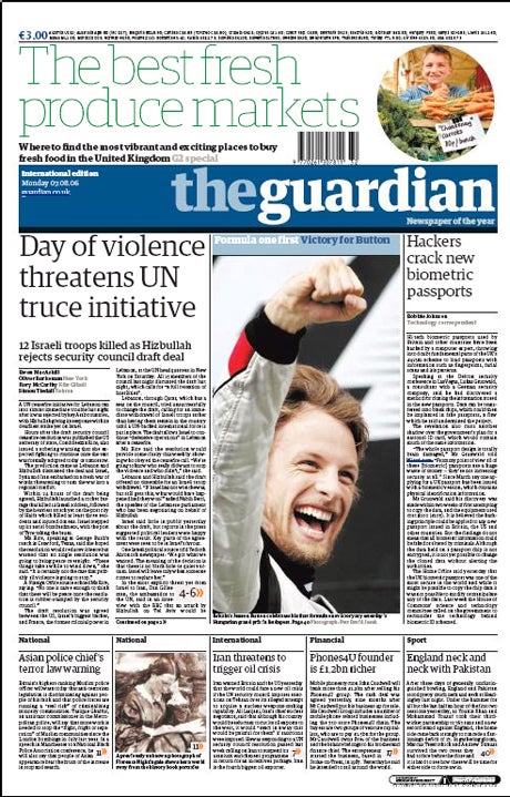 oe24.at Inland England The Guardian 07.08.06, 10:22 | Aktualisiert: 12.07.10, 18:31 Teilen 07.08.2006 The Guardian: Titelseite vom 07.08.2006 © oe24 Fehler im Artikel gefunden? Jetzt melden. Die Top-Stories vom oe24 E-Paper ÖVP rechnet vor: So viel spart sich ein Haushalt jetzt Super-Scheib rast zum Sieg am Kronplatz FPÖ startete "Austria First"-Radio ohne Musiknutzungs-Lizenz Oliver Pocher und Ex Sandy tanzen am Opernball mit Schock im Burgenland: Totes Neugeborenes bei Grenzübergang gefunden Häftling (18) wollte Mitinsassen mit Plastiksackerl ersticken TV-Hammer: Kaulitz-Brüder übernehmen "Wetten, dass...?!" 3 ORF-Shows: Barbara Schöneberger rockt uns den Song Contest Trump leakt Geheim-SMS - Macron will ein Treffen mit Putin! 10 Meter-Monsterwellen im Mittelmeer: Sturm "Harry" zieht Richtung Österreich
