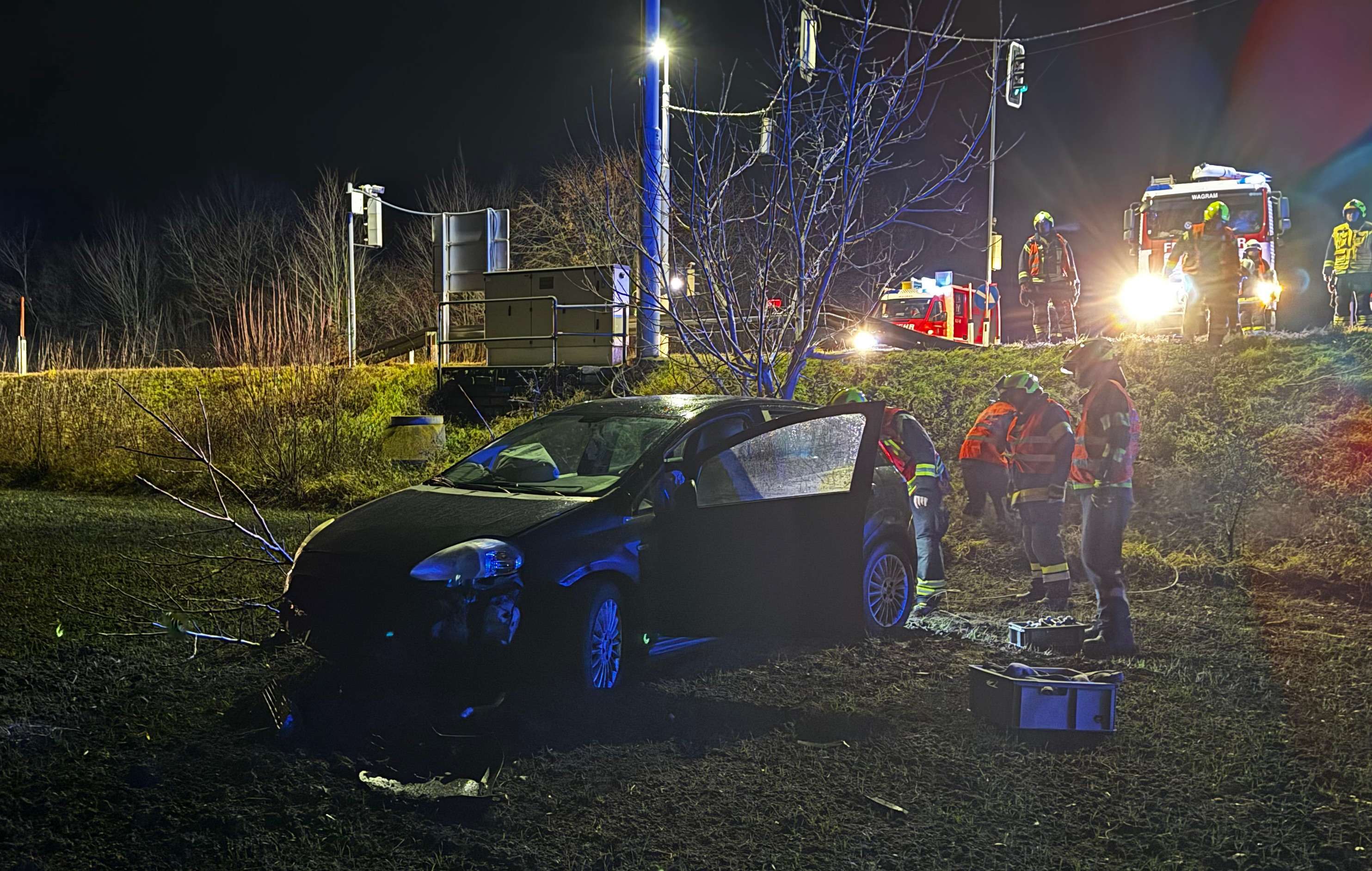Verfolgungsjagd in der Landeshauptstadt: Ein Kleinwagen landet wegen halsbrecherischen Fahrweise im Straßengraben.