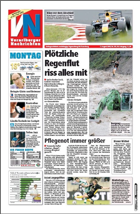 oe24.at Inland Österreich Vorarlberger Nachrichten 07.08.06, 10:28 | Aktualisiert: 12.07.10, 18:31 Teilen 07.08.2006 Vorarlberger Nachrichten: Titelseite vom 07.08.2006 © oe24 Fehler im Artikel gefunden? Jetzt melden. Die Top-Stories vom oe24 E-Paper Bei Dreh für Kommissar Rex - 12 Polizeiuniformen gestohlen Salzburger Festspiele 2026: Mozart und Messiaen, Handke und Jelinek "Elch Emil" ist das Wort des Jahres 2025 Neue Liebe für Iva Schell? Jetzt spricht sie Klartext! Causa Pilnacek: Volksanwalt beklagt jetzt Schikanen Neue Ukraine-Wende? Trump glaubt plötzlich nicht mehr an Deal EU einigt sich auf Lockerung der Gentechnik-Regeln Bruder-Zwist im Hause Schellhorn führt zu Streit bei NEOS Tennis-Beauty Potapova (24) schlägt ab sofort für Österreich auf Zahnarztstuhl und Co.: Verstörende Fotos zeigen Epsteins Horror-Insel