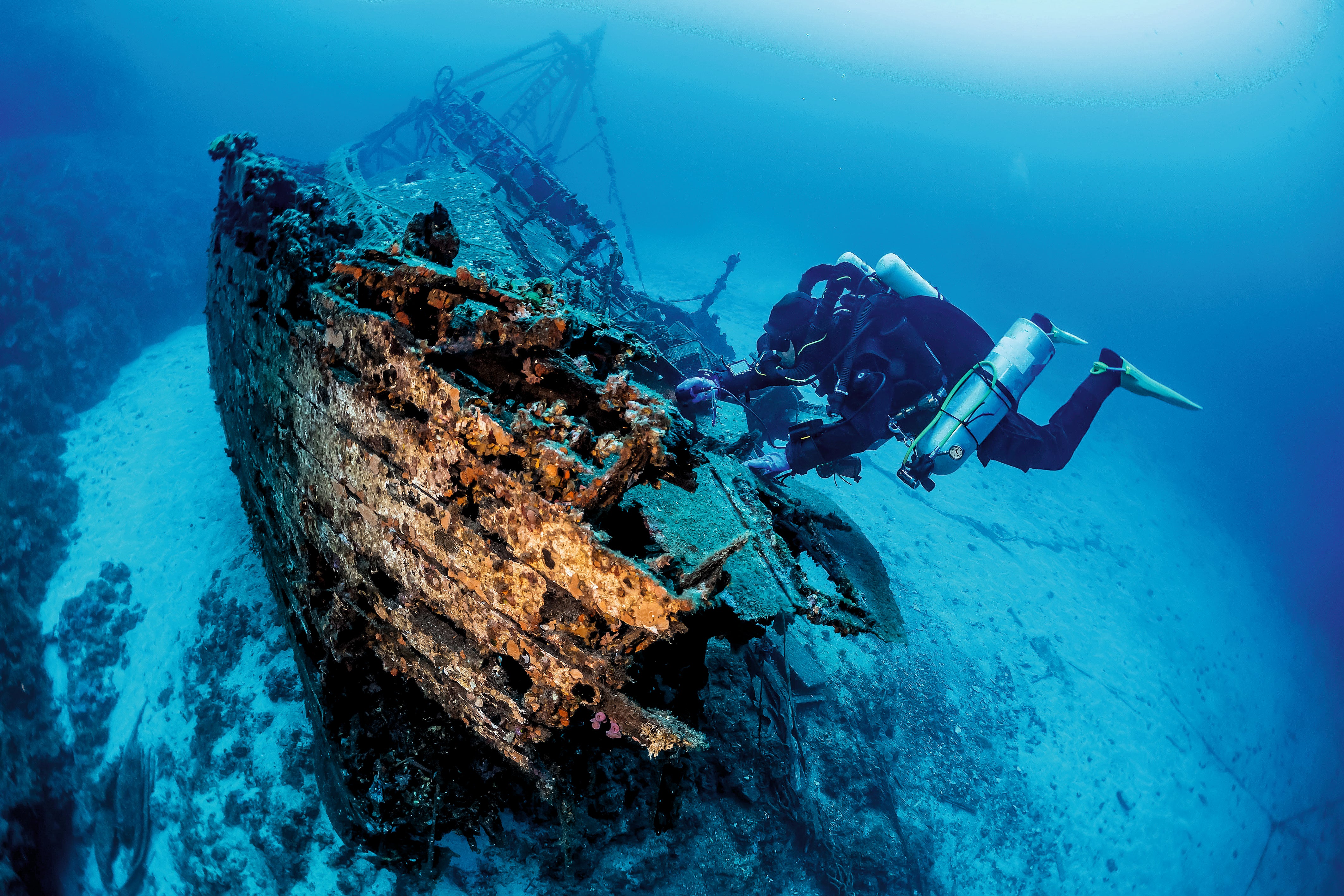 Die Region Istrien im nördlichen Kroatien ist für viele Tauch-Fans eines der beliebtesten Reiseziele. Die Unterwasserwelt der Halbinsel lockt mit schillernden Korallenriffen, geheimnisvollen Unterwasserhöhlen und einer Vielfalt an faszinierenden Pflanzen und Fischen. Wer sich traut, tiefer abzutauchen, findet auf dem Grund des Meeres noch Überreste gesunkener Schiffe und Flugzeuge. Tief im dunklen Blau verborgen ergeben diese ein außergewöhnliches Bild.