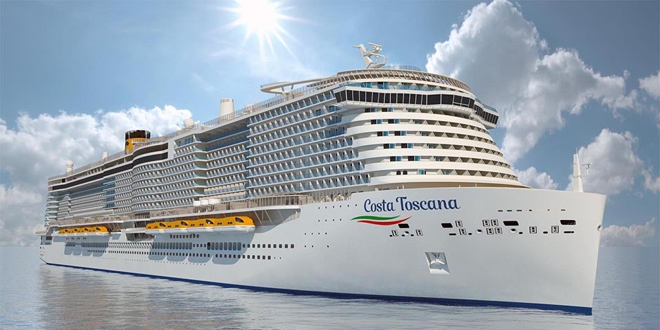 Die Costa Toscana wird, wie ihr Schwesterschiff Costa Smeralda, mit Flüssigerdgas (LNG) angetrieben. Es ist derzeit die fortschrittlichste Treibstofftechnologie der Schifffahrtsindustrie, zur Reduzierung von Emissionen, sowohl auf See als auch bei Hafenaufenthalten. Die Costa Gruppe, zu der neben Costa Crociere auch AIDA Cruises gehört, war weltweit das erste Kreuzfahrtunternehmen, das diese Technologie eingeführt hat. Sie hat fünf neue Schiffe mit LNG-Antrieb bestellt, von denen zwei, Costa Smeralda und AIDAnova, bereits in Dienst gestellt wurden. Sie sind Teil eines Expansionsplans, der sieben neue Schiffe umfasst, die bis 2023 an die Costa Gruppe ausgeliefert werden sollen, mit einer Gesamtinvestition von mehr als sechs Milliarden Euro.