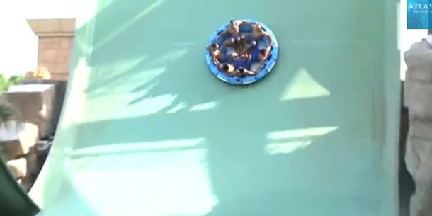Die "Aquaconda" in Dubai wird mit einem Schlauchboot gerutscht.