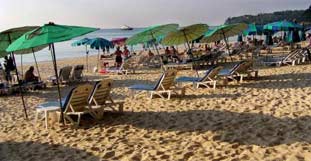 einer Hauptstraße gelegen. Zum Strand, an dem Sie Liegen und Sonnenschirme