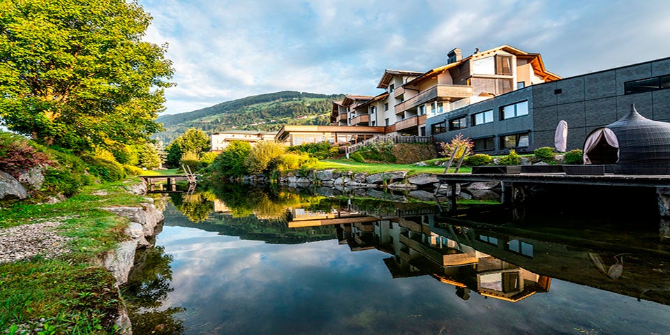 Ganz egal auf welche Weise man körperlich aktiv war – der große Naturbadeteich in der Dolomiten Residenz hält für Alle eine willkommene Abkühlung parat. Der Sprung ins kühle Nass ist ein wahrer Genuss, relaxt wird danach direkt am Steg oder im großzügigen Garten im Schatten der Bäume. An kühleren Tagen steht als Alternative der beheizte Outdoor-Pool bereit. Auf den Sprudel-Liegen chillend blickt man hier hinauf zu jenen Gipfeln der Karnischen Alpen, von denen man einen vielleicht ja gerade eben erst bezwungen hat. Wer dann noch immer Energien übrig hat, der powert sich im hoteleigenen Fitnesscenter mit grandiosem Bergblick aus, oder beim wöchentlichen Aktivprogramm.