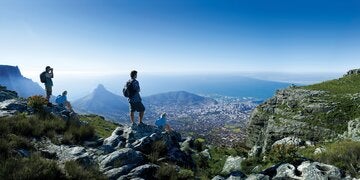 Mother City – so nennen die Einheimischen ihr Kapstadt oft liebevoll. Kaum eine Weltstadt liegt imposanter eingebettet zwischen Bergen und Meer. Die Innenstadt schmiegt sich auf der einen Seite an den weltberühmten Tafelberg und den Lions Head. Auf der anderen Seite grenzt die mondäne Victoria & Alfred Waterfront an den Südatlantik. Ganz klar also - diese City muss man von oben sehen! Wer jedoch keine Lust auf die Warteschlangen bei der Gondel hinauf auf den Tafelberg hat, der erklimmt ihn einfach selbst. Rund 100 verschiedene Wanderwege schlängeln sich von Kapstadt auf das Bergmassiv, wobei die kürzesten Wanderungen rund 2 ½ Stunden dauern.