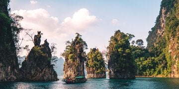 Der Khao Sok Nationalpark mit tropischem Regenwald und bewachsenen Kalksteinfelsen liegt rund 80 Kilometer entfernt von Khao Lak. Sicherlich zu den spektakulärsten Landschaften Thailands zählt das Cheow Larn Reservoir mit dem gleichnamigen See in dem Hunderte von Kalksteinfelsen ein atemberaubendes Naturschauspiel bieten.