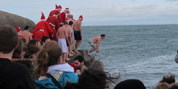 Weihnachtsschwimmen im eiskalten Wasser in Irland